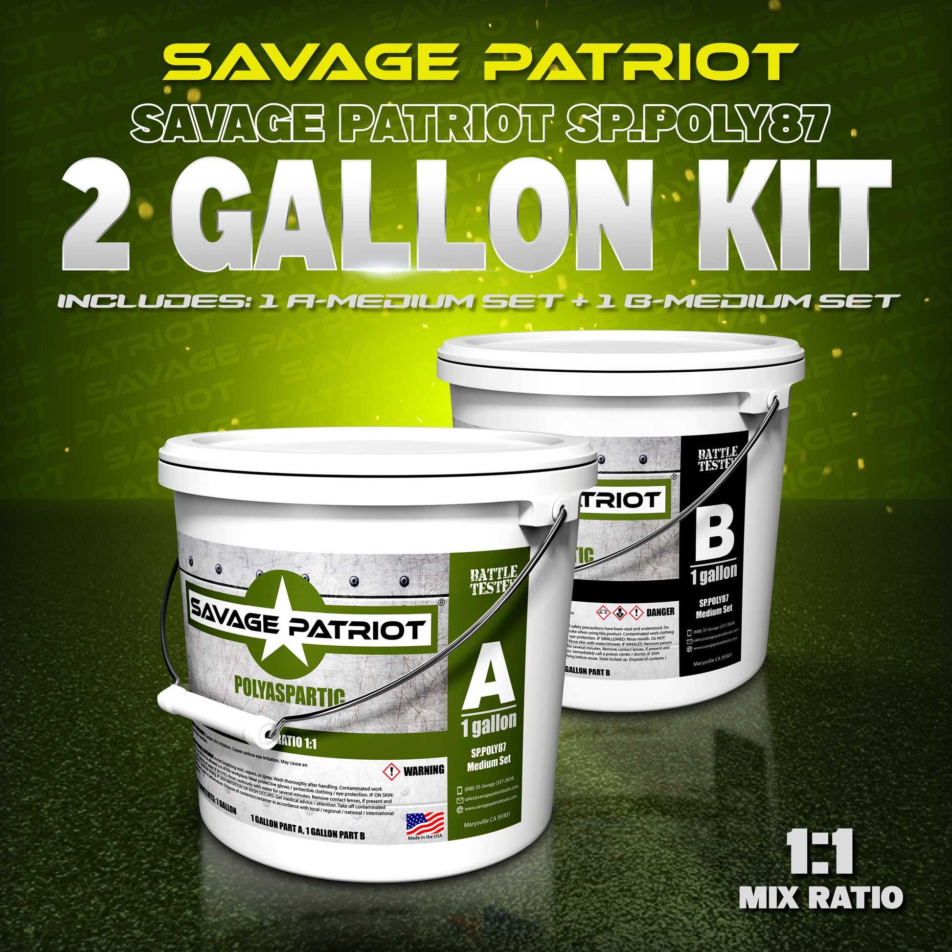 SP-Polymers SP.POLY87 (1:1 Polyaspartic Topcoat) LOW ODOR Slow Set Set 2 Gallon Kits