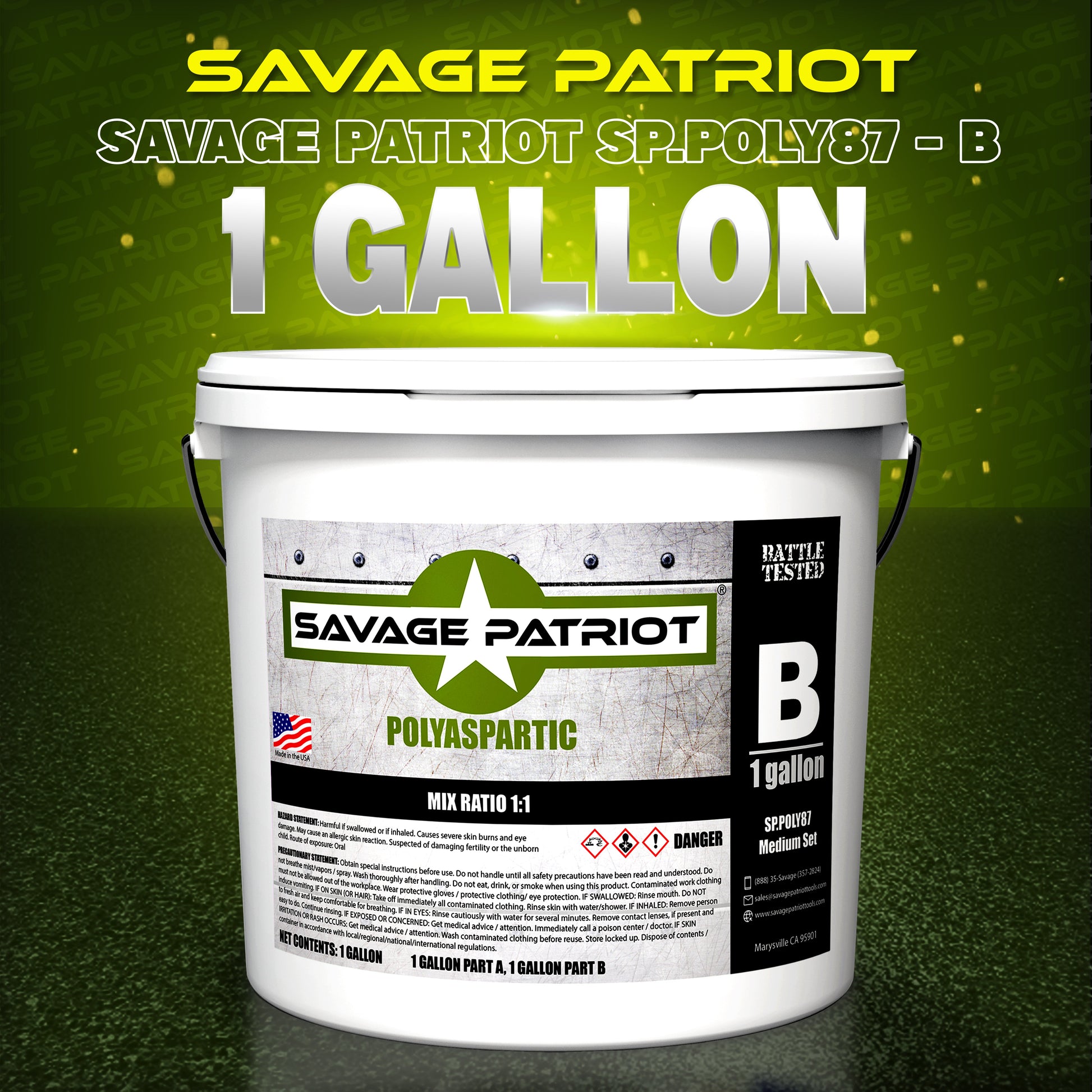 SP.POLY87 is an 87% solids, two component 1:1, Aliphatic multifunctional polyurea aspartic amine blend. This version is designed with LOW ODOR and extended working time compared to our Medium Set POLY. Spread rate is around 185-200 SF per gallon depending surface area.